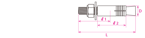 | ねじの呼び | 品番 | アンカー外径 D | 全長 L | ねじ長さ ℓ1 | スリーブ長さ ℓ2 | 最大 取付物厚 | 穿孔径 | アンカー 埋込み長さ | 穿孔深さ | 入数 | 標準価格 (税抜き) | |
