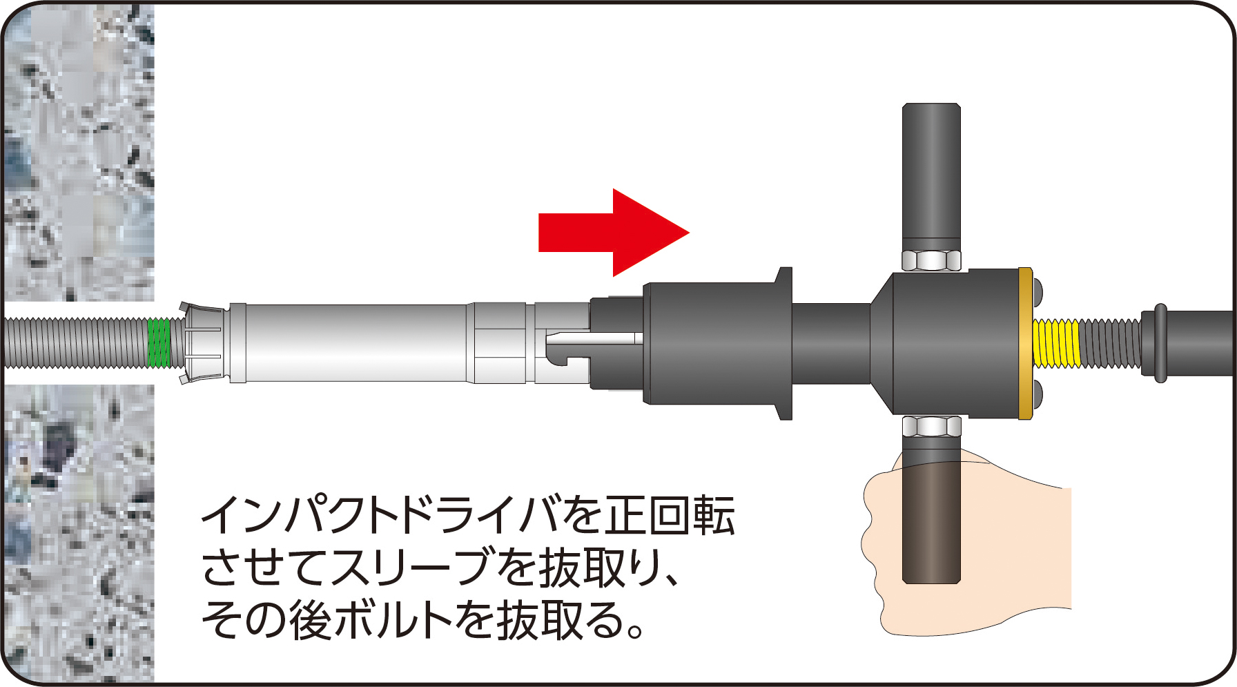 ●スリーブ抜取り直後にボルトと分離しますので、落下させないようにご注意ください。