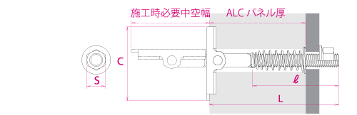 | ねじの呼び | 品番 | 全長 L | ねじ部長さ ℓ | プレート長さ C | 施工時必要 中空幅 | ALCパネル厚 | 穿孔径 | 入数 | 標準価格 (税抜き) | |