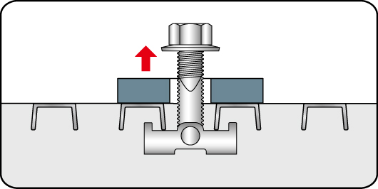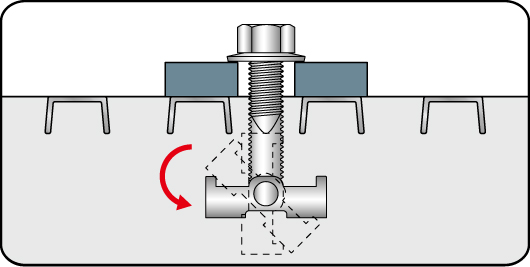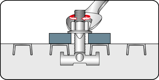 ❶ 本体に座金付きナットをセットし、取付物の上から挿入